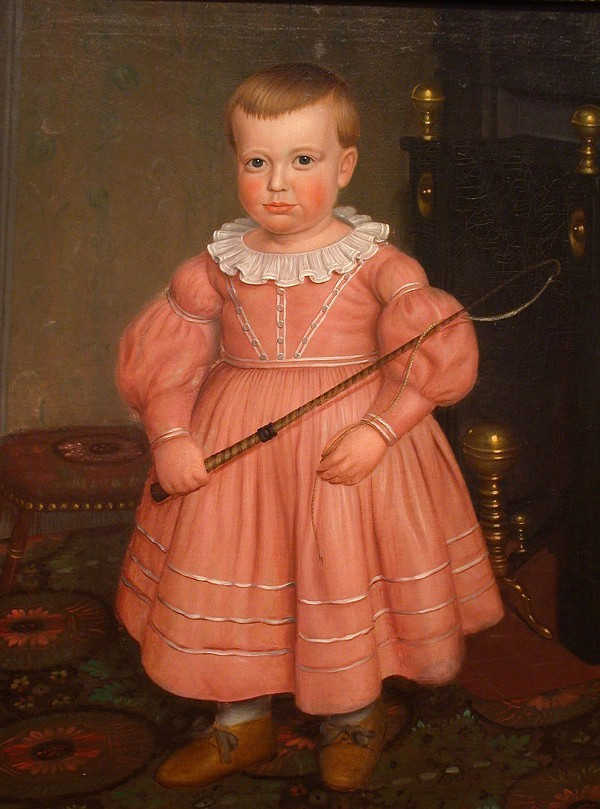 Dall’ottobre 2013 al maggio 2014, al Museum of Fine Arts di Boston si è tenuta la mostra Think Pink, un’esposizione per esplorare la storia e l’impatto sociale del colore rosa. La curatrice, Michelle Finamore, ha raccontato di come in passato il colore non fosse associato ad alcun genere, portando ad esempio uno dei quadri esposti. Si tratta di un dipinto nel XVIII secolo che ritrae due bambini che indossano vestitini femminili, uno rosa e uno giallo: “Sopra portano un grembiule — spiega Finamore — e non è possibile dire se siano maschi o femmine”.